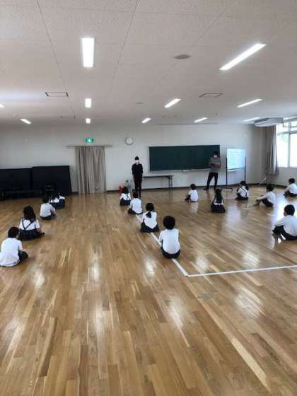 7年生(中学1年生)は9:30〜、1年生(小学1年生)は10:30〜から行いますので、それまでに本校体育館にお越しください。