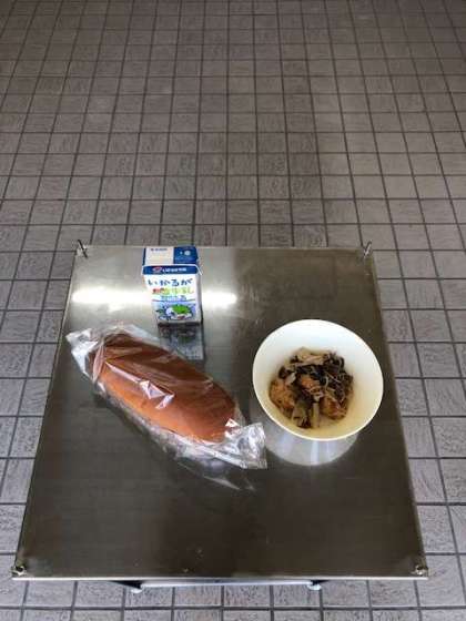 今日の献立は小学校はこくとうパン・牛乳・すき焼き煮、中学校はこくとうパンと牛乳でした。