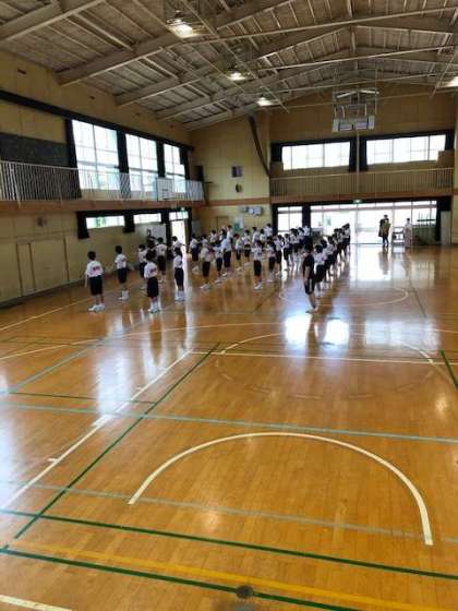 6月3日(水)、中学校で保健体育の授業が始まりました。7年生の授業では最初ということもあり、整列や集合などの授業の基本について時間を費やしました。