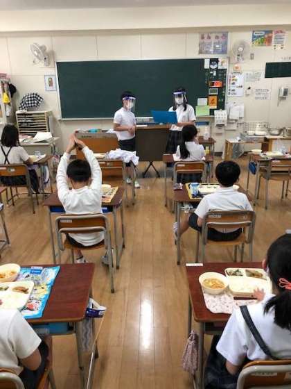 今日は5年1組の「いただきます!」の様子ですが、その前に、5・6月が誕生日の児童の紹介が先生からありました。呼ばれた児童の皆さん、おめでとう!