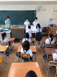 6月26日の朝一番、1年生に8・9年生からサプライズのプレゼントがありました。