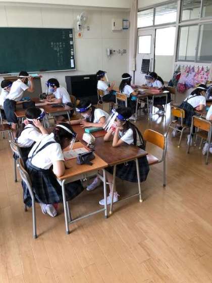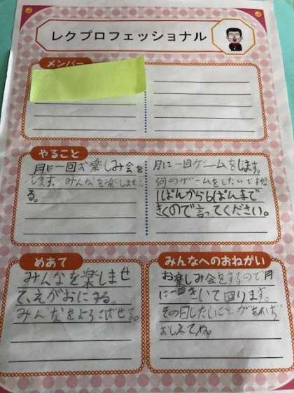 3年生で班活動を行っています。フェイスシールドをしながら、各班でレクプロフェッショナル・バースデー隊・なぞなぞ軍団・ほめジョーズ・あそびボーイズ・アンケート社と名付けたクラスの係活動を決めました。みんな大盛り上がりでした。