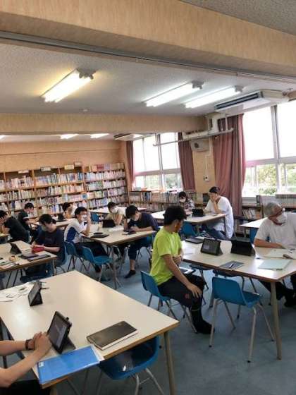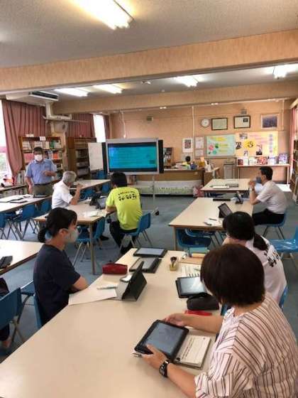 7月14日の放課後、Teams教員研修を行いました。ICT担当教員を中心に、ログイン・クラス作成・ビデオ通話・チャット通信などのやり方を学習しました。