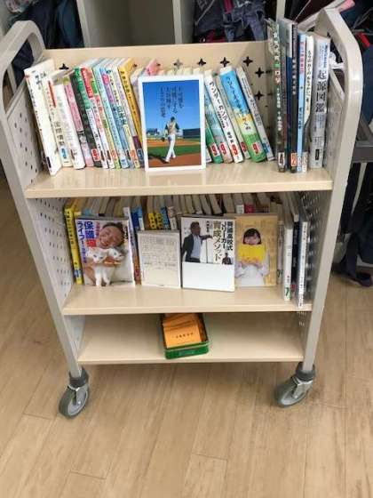 ブックトークの後には本の貸し出しがあり、多くの生徒が本に触れていました。