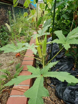 また、オクラも大きくなってきました。この季節にピッタリの野菜で食べたいところですが、いかんせんちょっぴり固いので、それもかないません。観賞用のオクラです。