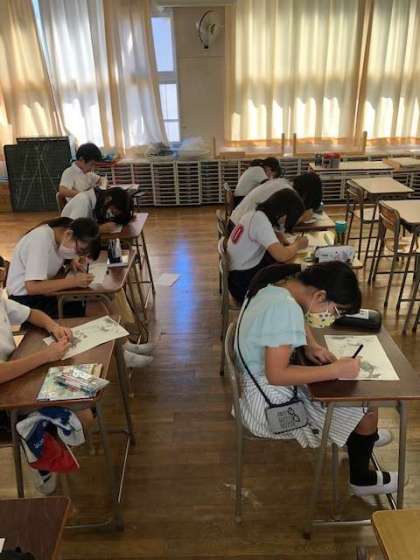 美術は「みんなでつくろう妖怪図鑑」の授業で、一人一人がオリジナル妖怪を描きました。