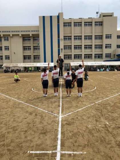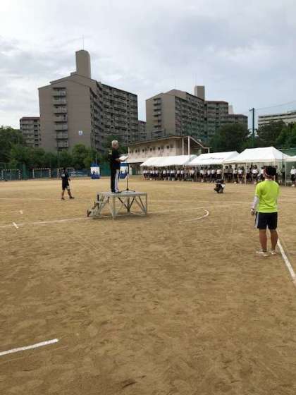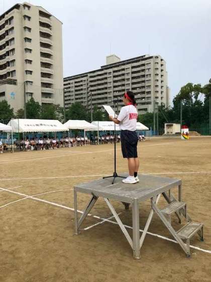 写真は開会式の様子です。今回は「最短で最高の体育大会」を目標に、入場行進など従来あったプログラムを縮小したかたちで行っています。