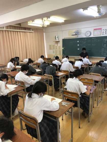 10月8日、中学校の中間テスト2日目が行われています。今日の教科は英語・理科・数学の3教科です。