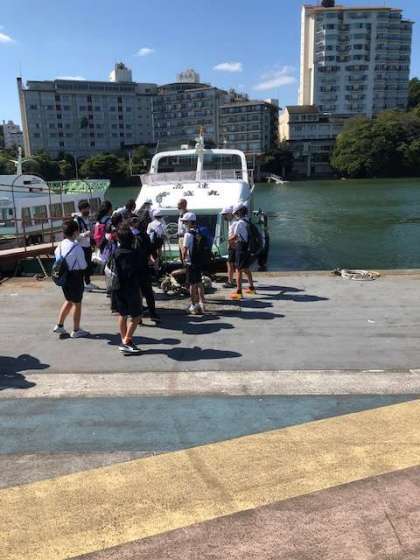 予定通り鳥羽マリンターミナルに到着しました。今から菅島にチャーター船で渡ります。ただ、島では風が強いので、魚釣りをやめて、クラフト体験に変更します。