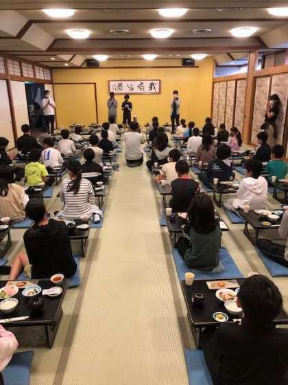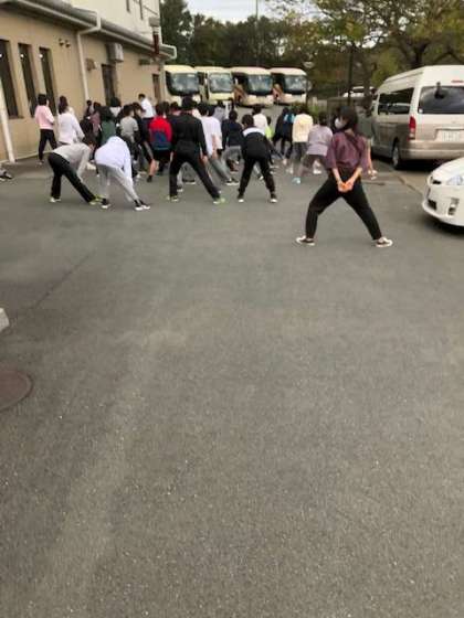 修学旅行2日目がスタートしました。全員元気です。朝の会、体操、朝食と予定通り進んでいます。
