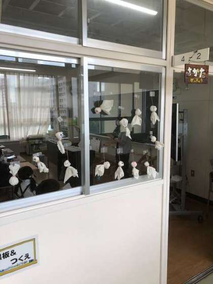 教室に飾られたてるてる坊主のおかげか、ようやく雨が上がり、午後からは薄日が差してきました。このまま天気が推移してくれると明日の小学校スポーツフェスティバルは予定通り開催できそうです。