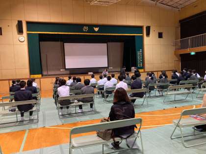 いよいよ進路決定の時期になります。今日は高校から説明に来て頂き、それぞれの学校の紹介をしてもらいます。