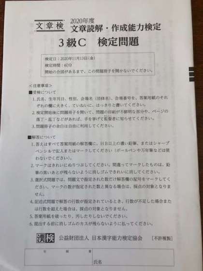 11月13日の午後、9年生が文章検定を受けました。これは、読解力・作成力を身に付けることを目的としています。これからの入試や就職試験で問われる力にもなります。