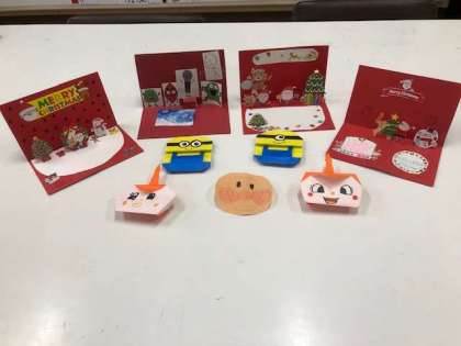 クリスマスカードは生徒と担任が一人一つずつ作成しました。とても可愛いカードが出来ました。