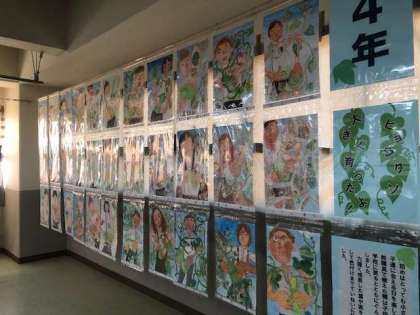 4年生「大きく育ったひょうたん」・・・葉や実をよく観察して丁寧に仕上げました。