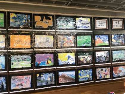 9年生「一版多色刷り」・・・美術館で並ぶ名画たちを多色刷り版画で表現しました。