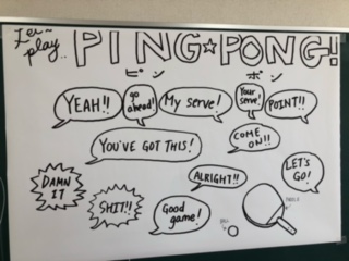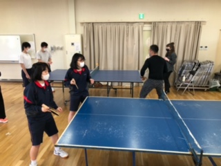 生徒たちはとても楽しそうに英語のみで会話しながら卓球をしていました。