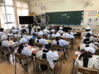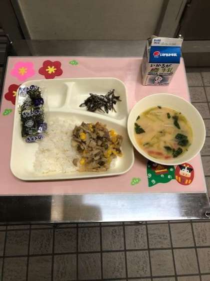 1月8日、今日の給食は正月の行事献立で、雑煮とごまめがでました。