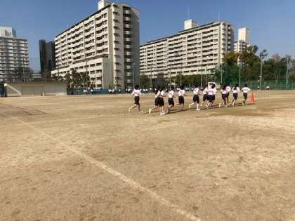 2月9日に行われる駅伝大会に向けて中学生が盛り上がってきました。体育の時間に学年男女全員で毎時間2km走を行っています。
