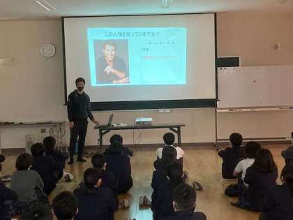 7年生は障がい理解教育を行いました。いろいろな障がいについての理解を深めました。写真は俳優のトム・クルーズの学習障がいの話を聞いているところです