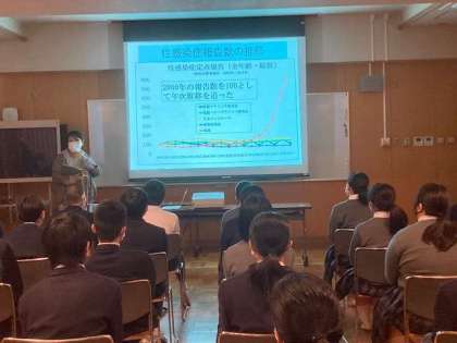 9年生は性教育を行いました。本校養護教諭から性感染症や望まぬ妊娠についての話がありました。