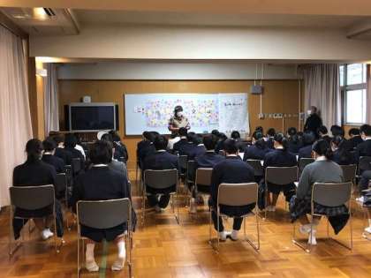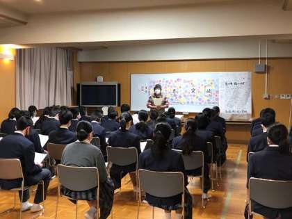 本日6時間目、9年生対象に私立高校入試に向けてのお話がありました。いよいよ明日ですね。緊張したり、不安だったり、いろいろな気持ちが入りまじっていることと思います。