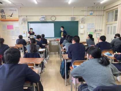 担当の先生への質問コーナーがつくられ、和やかな雰囲気で様々な質問が生徒からありました。大きな声では言えない質問もあったみたいで、答えに窮する場面も多々あったみたいです。