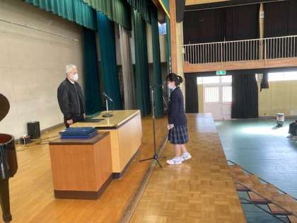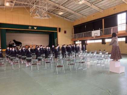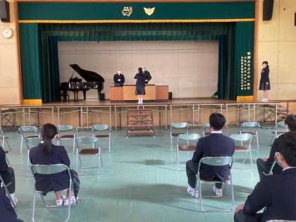明日は予行とは違い、周りの厳粛な雰囲気に緊張してしまうかもしれません。でもその中で胸を張って大きな声で返事し、歌う9年生の姿に期待しています。