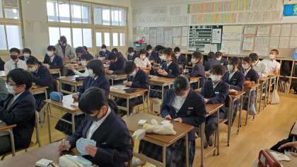 卒業式予行と同じ時間、7年生が高校出前授業が行われました。