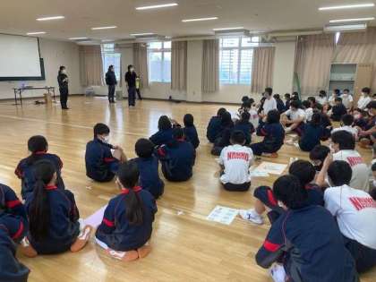 6限はグランドに飛び出して、借り物競争とドッチビーで元気一杯走り回りました。