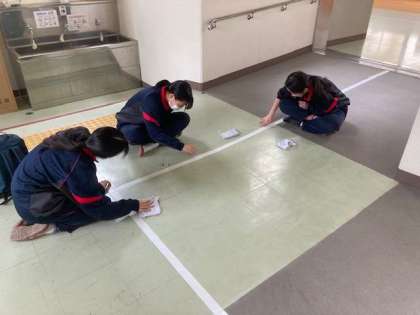 3月25日、春休みの初日、朝からバドミントン部員が校舎の大清掃を行ってくれています。自分たちが普段使っていない小学校校舎の階段や廊下も丁寧に拭いてくれています。