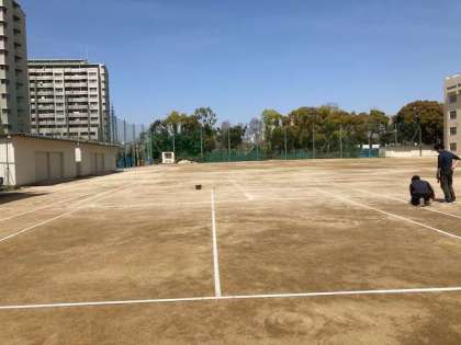 テニス部の部員はこのコートでしっかり練習して、目指せ大阪市チャンピオン!