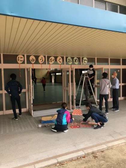 明日の入学式に向けて、全教職員で準備作業を行っています。新1年生、新7年生に気持ちよく入学してもらいたいと思っています。