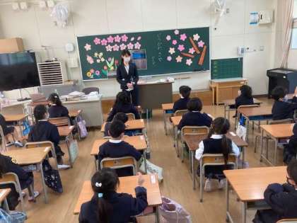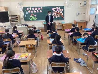 小学校で始業式が行われている間、新1年生はクラスで学活を行いました。
