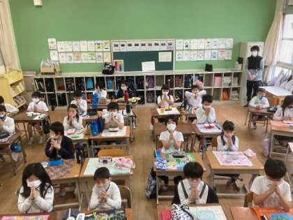 予定されていた遠足が「緊急事態宣言」の影響で中止になったため、3年生の昼食は給食ではなく、お弁当でした。