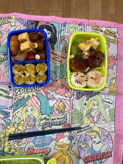 遠足が中止になったことはとても残念だったのですが、いつもとはは違うお弁当での昼食の時間は子どもたちにとってもワクワクの時間でした。