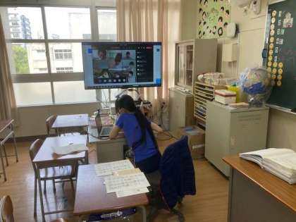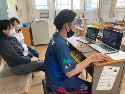 担任の先生とオンラインでクイズをしたり、楽しい会話をしました。