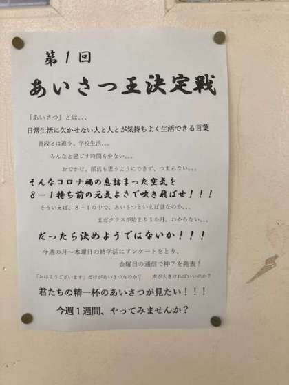 コロナ禍の息詰まった空気を元気よさで吹き飛ばせ!を目的に学年をあげて行います。