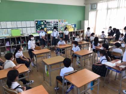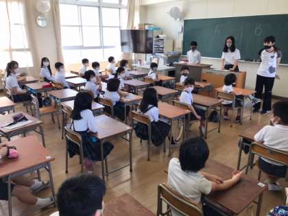 それぞれの教室で工夫して自己紹介や並び方を練習しました。