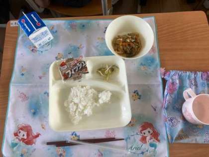今日の献立は米飯・牛乳・マーボーはるさめ・チンゲンサイともやしの甘酢あえ・アーモンドフィッシュでした。
