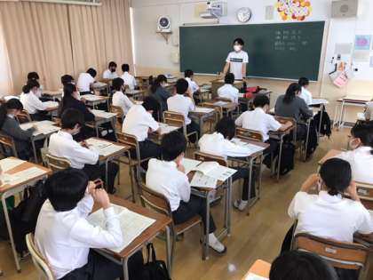 7年生は、昨日までの期末テストが返却され、設問の解説を聞いています。