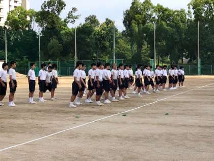 6月24日(木)に行われる中学校第37回体育大会に向けて、9年生が集団演技の朝練を本日より始めました。