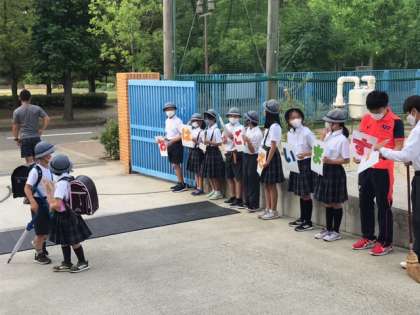 今朝は小学生児童会が「あいさつ運動」を行ってくれました。