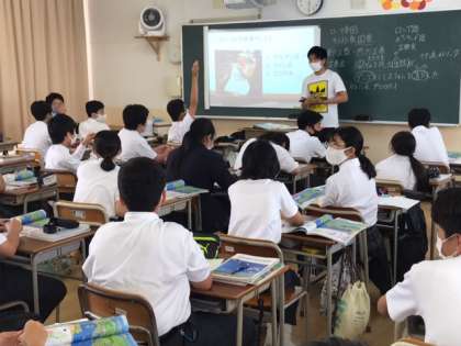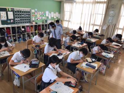 7年2組は、電子黒板を用いて歴史の授業を行っています。