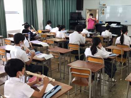 8年1組の音楽では、アルト笛の演奏を学んでいます。