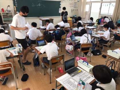 4年1組は、浄水場の仕組みについて営巣を用いた学習をしました。