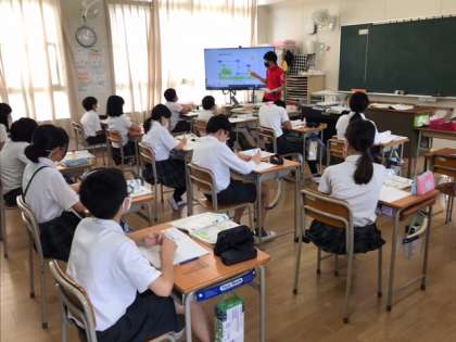 6年1組は、理科の時間で植物の仕組みをICTを活用して学んでいます。