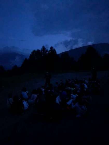 約20分の時間、どの子も一言も話すことなく、大自然を肌で感じることができたようです。残念ながら雲が出ていて星がほとんど見えませんでしたが、先生の星に関する話を聞きました。話を聞いている最中に運良く衛星を見ることができました。
