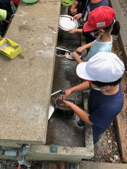 おいしく食べた後は後片付けです。お借りした道具を元通りにピカピカにして返します。