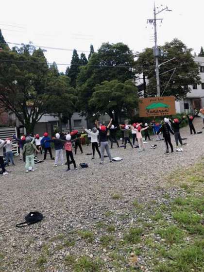 朝の集いをしました。体操をして、「だるまさんが転んだ」で軽く体を動かします!